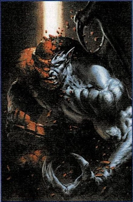 Danger strikes when the super villain Diablo learns stone gargoyles may hold the secret to eternal life… but the Gargoyles aren’t about to let him leech the blood of his own! Fortunately, they’ve got the help of expert Diablo-bashers – the Fantastic Four ! Plus: Tony Stark and David Xanatos compare facial hair, Marvel’s own Gargoyle, Isaac Christians , bonds with his new kin, and more!