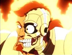 The one common feature all Coyote robots share is the image of a robotic Xanatos head. The right side of the face (from Coyote's own point of view) resembles the face of David Xanatos, and the left side is a robotic metal skull. The image was created when Bronx tore the skin-like covering off of the left side of the face of Coyote 1.0. The original half-robotic head was destroyed along with Coyote 2.0, but its image has reappeared as a part of all subsequent Coyote models, either displayed on a monitor or projected as a hologram.