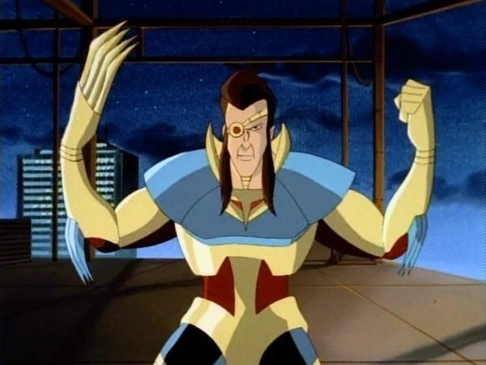 The Pack finally resorted to robbing banks to provide them with money, and were again beaten back by the gargoyles. As they lay beaten, Coyote's head approached them in their ship, and asked if they would like to be able to give the gargoyles back some of the punishment they had taken. The Pack said yes, and Jackal himself was fitted with cybernetic enhancments. These included spike fingers that shot out like darts, extendable legs, re-attachable arms, a cybernetic eye and ear, laser and cutting blade weaponry, and various other mechanisms. Jackal, along with the newly upgraded Pack, easily defeated Hudson, Bronx, Goliath, and Elisa. He chose Wolf over the new Coyote 2.0 as his leader, as he was disgusted by his sister's fawning attraction over a robot, but was overruled by Dingo. The other gargoyles came to the rescue later on in a trainyard, defeating Jackal and the rest once again. Unknown to all, the entire battle was a game, the Pack and the gargoyles simply like pieces to be manipulated by Fox and David Xanatos.[5]