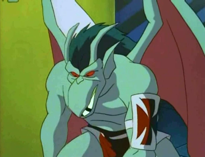 Malibu looks much like Brooklyn, but the artificial aging changed his coloration, giving him teal skin, red-and-white wings, blackish-green hair, red eyes, black teeth, and a white mouth. His brow ridges are also more pointy than Brooklyn's. He sounds like Brooklyn when he speaks as well. Malibu's eyes glow red, not white, as most male gargoyles' do.